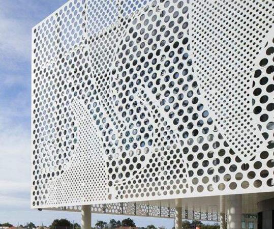 穿孔鋁單板是鋁單板的一種細化產(chǎn)品。具有良好的加工性能,其穩(wěn)定的特性為板面加工提供了多種類別的選擇,色彩多樣,且能夠適應多類較為復雜的形狀設計。其良好的加工性能方便了 人員將其加工成為多種形式的線條。所以在選擇上,穿孔鋁單板為設計人員提供了一個更為 豐富的設計創(chuàng)想空間。