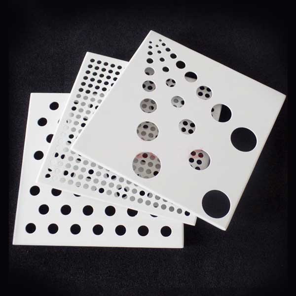 與常規(guī)鋁單板相比,沖孔鋁單板的特征就是表面形狀各異的沖孔(包括圓孔、方孔、五角星、六邊形孔等),裝飾效果突出,也能夠在一定程度上起到降低噪音的作用。集裝飾性與實用性于一體,沖孔鋁單板在工程裝飾中使用的越來越多。