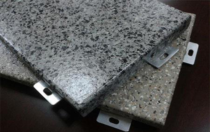 仿石紋氟碳鋁單板的主要特征是鋁單板表面逼真的石紋色,裝飾效果喜人,且質(zhì)量輕、安裝方便,幾乎可以替代大理石這種幕墻材料。它主要通過熱轉(zhuǎn)印等工藝,把石紋色轉(zhuǎn)印到鋁板表面,然后再噴上氟碳罩光漆,經(jīng)過多次噴涂和烘烤,終客戶定制的石紋效果。